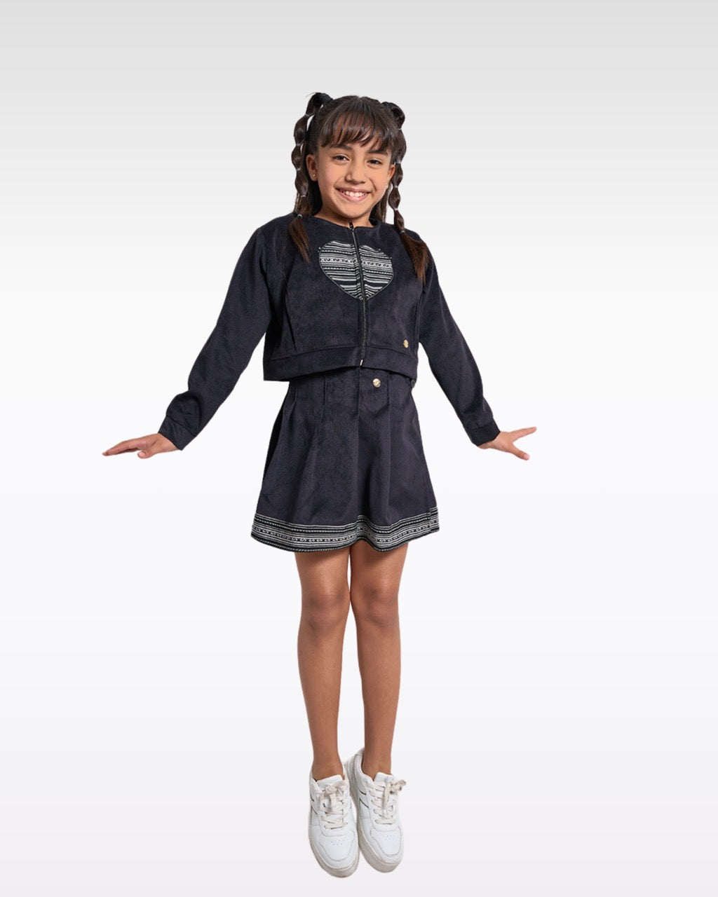 Esta falda de corduroy en color negro, además tiene en la parte inferior una línea en telar lliclla en tono blanco y negro. Luce increíble y a la moda con el estilo Pop Andino by Milena Warthon.