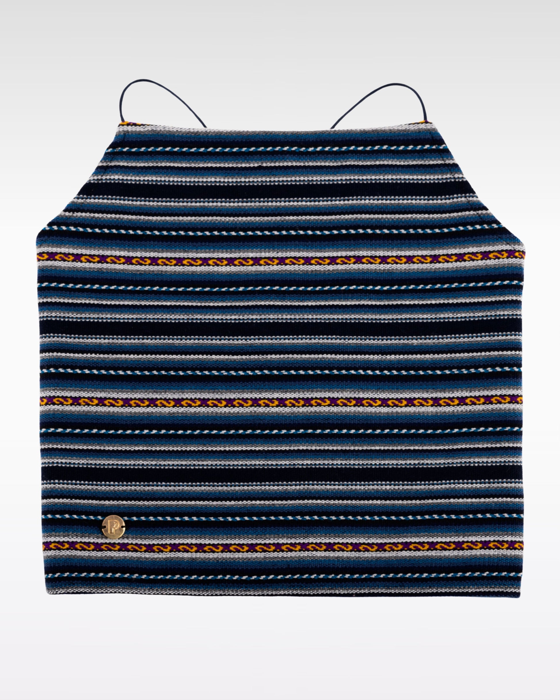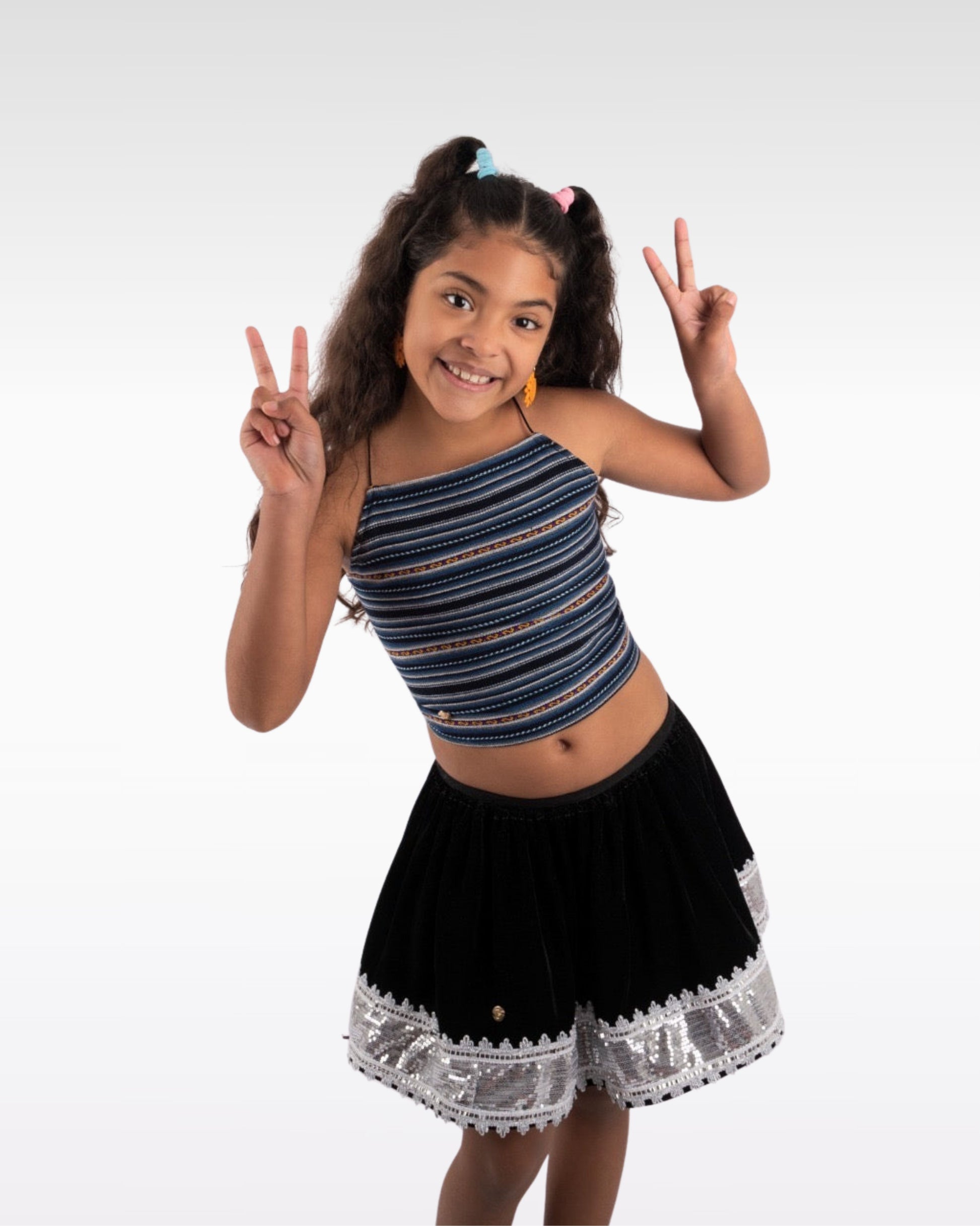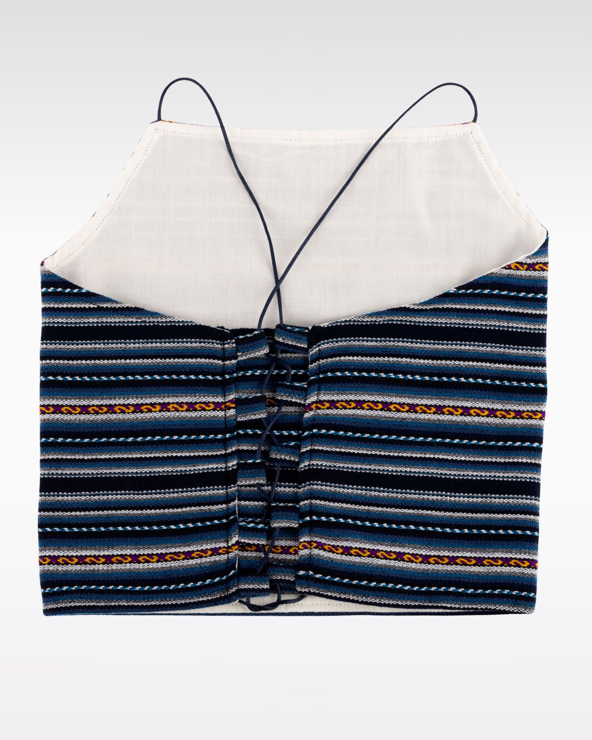 Top de lliclla (telar andino) para niña con tiritas sobre los hombros de varios colores super combinable con otras prendas básicas, siéntete cómoda al usarlo porque tiene un pasador graduable en la parte trasera.