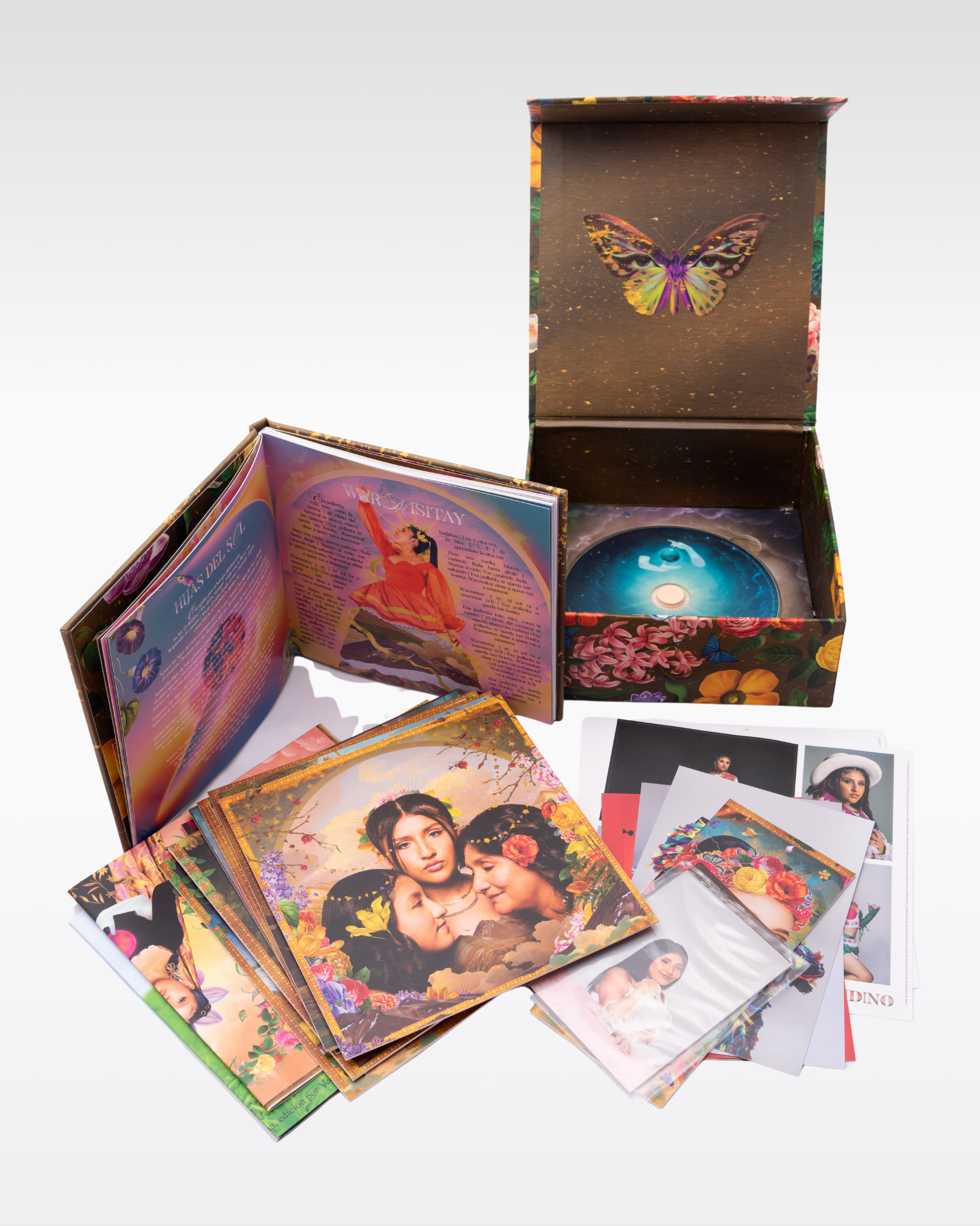 - Libro de tapa dura que incluye un cancionero y un photobook de detrás de cámaras.