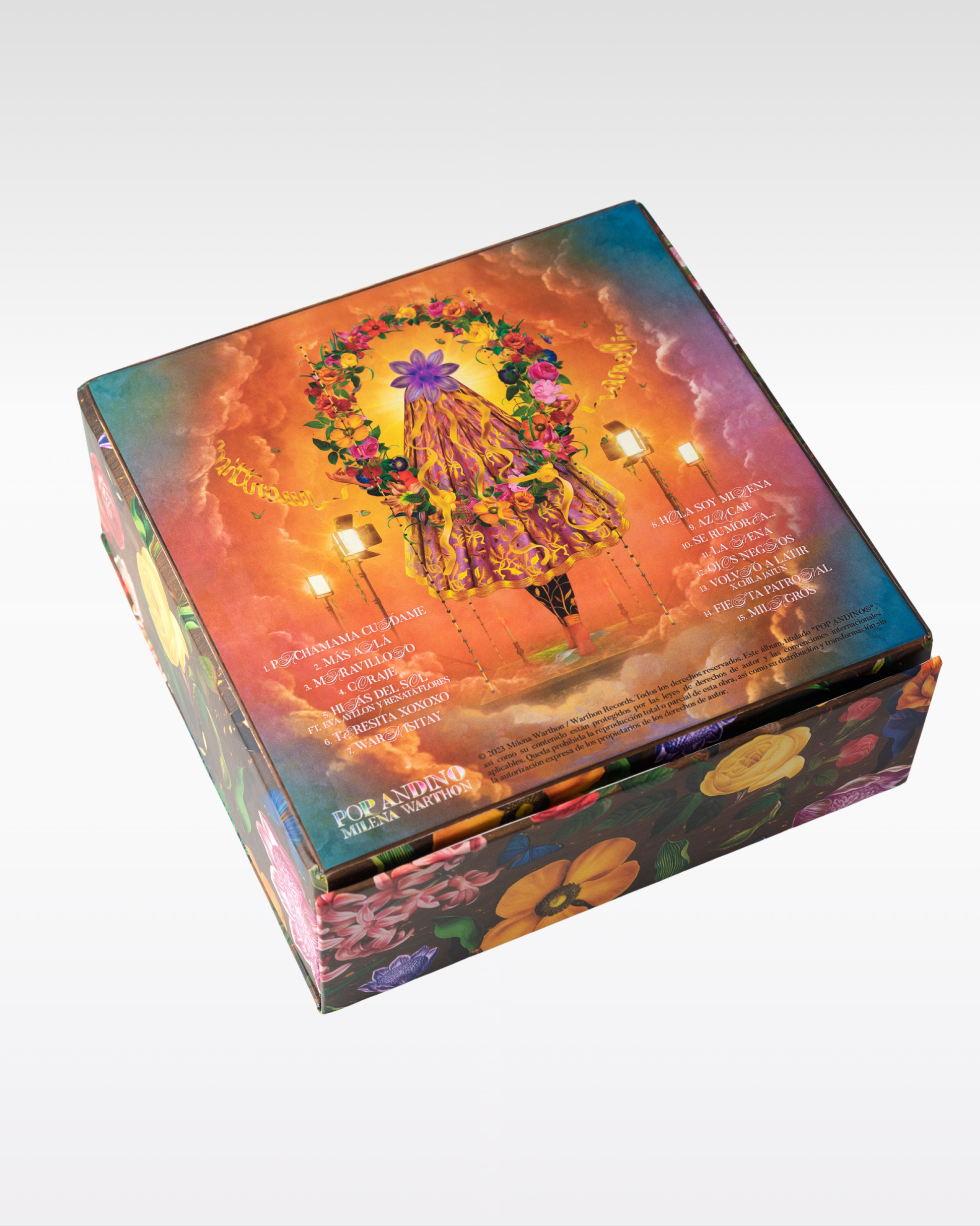 La versión Box del disco "POP ANDINO" ofrece mucho más que música. Con elementos exclusivos que te sorprenderán, este paquete te permitirá explorar aún más el mundo de Milena Warthon. Descubre sorpresas especiales y detalles emocionantes que harán de tu experiencia una vivencia única y emocionante.