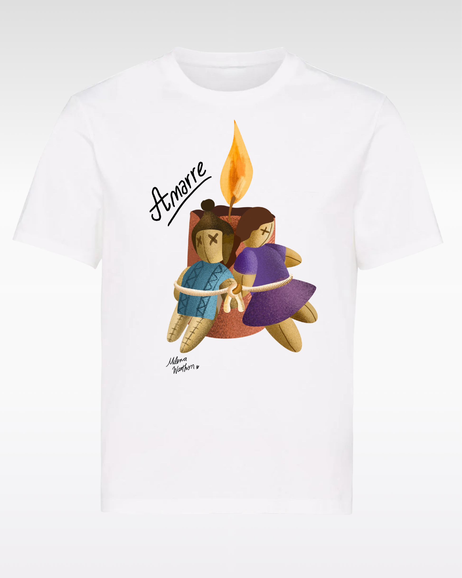 ¡Lleva tu amor por la música a donde quieras con nuestro Polo Amarre! Confeccionado en suave algodón y con la icónica portada de la canción "Amarre" de Milena Warthon, este polo es la combinación perfecta de estilo y pasión por la música.