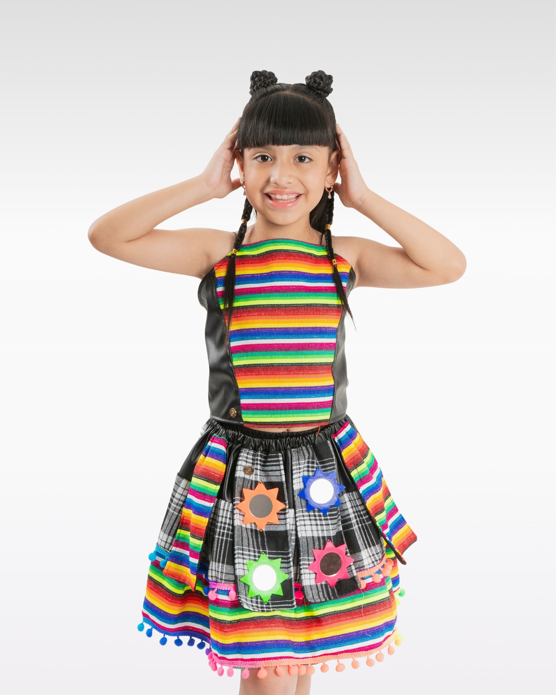 La parte superior de nuestro conjunto "Volvió a latir" es una expresión de ritmo y estilo. Las llicllas añaden el toque de tradición, mientras que el pasador ajustable en la parte trasera permite adaptarlo a tu comodidad. ¿Te vas a quedar sin el tuyo?